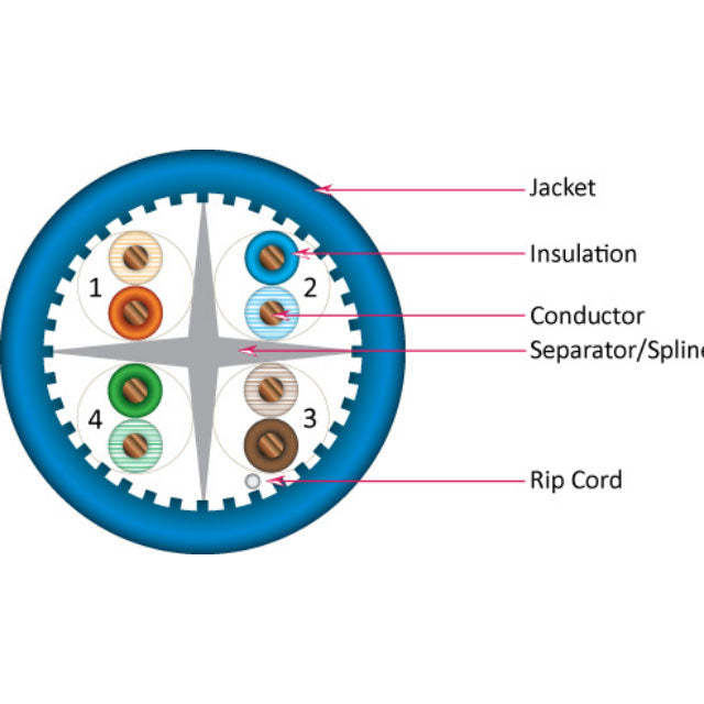 Cat6a Riser Cable, 4 pair Solid UTP, Blue