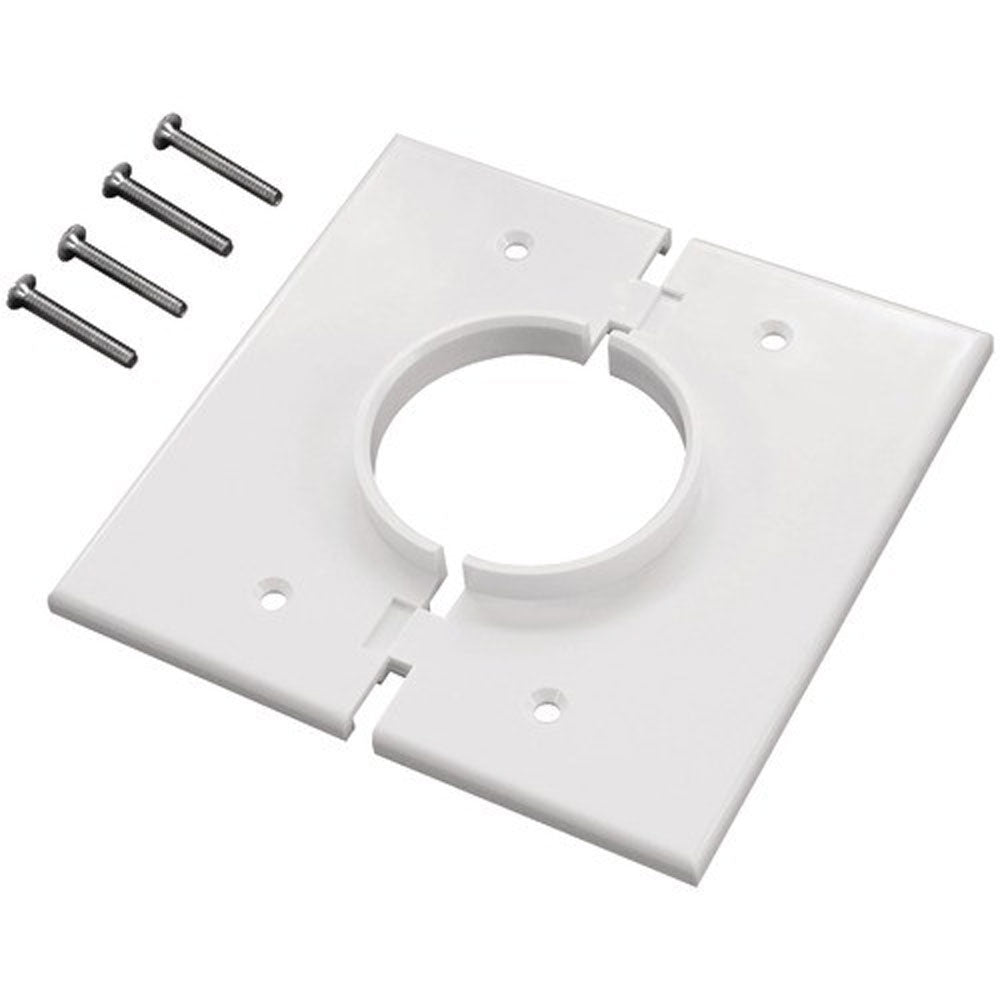 Installing the Splitport™ plate is easy. Install one half and then the second half, all while the cabling is held or lying naturally out of the way, or just assemble around the cables and slide into position and secure to electrical box. Add the grommet insert to maintain a closed area leaving an aesthetically clean appearance.