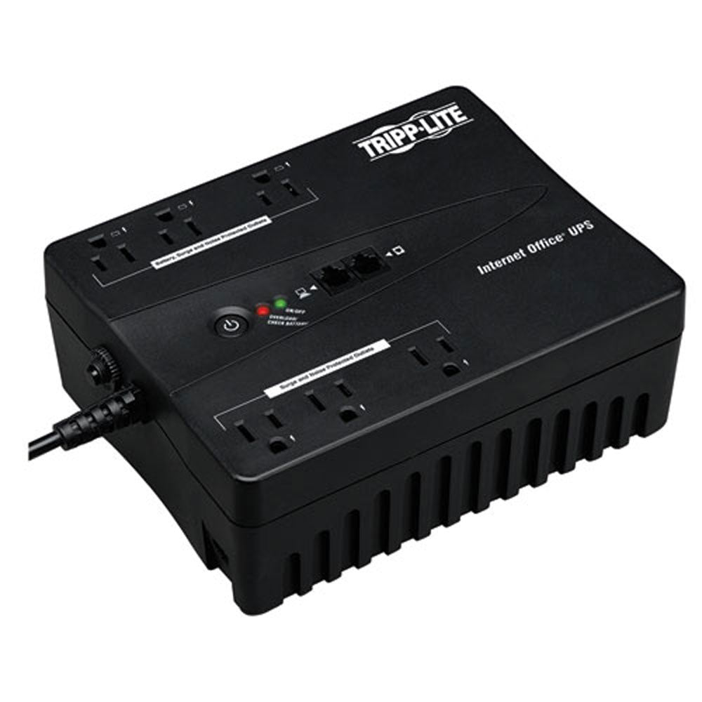 Tripp Lite's INTERNET350U standby UPS offers complete protection for PCs, workstations and other sensitive electronics in an attractive ultra-compact, mountable housing. Prevents data loss and system downtime by providing battery supported AC output during brownouts and blackout conditions. 6 output receptacles, two of which are widely-spaced to accommodate large transformer plugs without blocking outlets. 3 outlets with full battery support and surge suppression protect computers, monitors and other vital system components from loss of power. 3 additional outlets with surge suppression-only are ideal for printers and other accessories not requiring battery support.