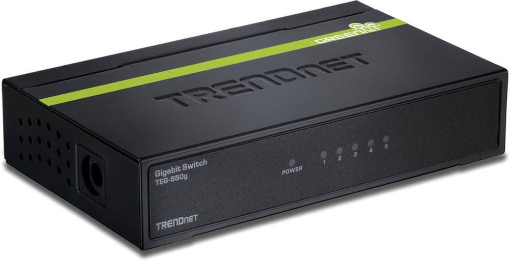 TRENDnet's 5-Port Gigabit GREENnet Switch, model TEG-S50g, provides performance, proven reliability, and power savings of up to 70%. Eliminate network congestion with Gigabit speeds and total switching capacity of 10 Gbps. Plug and Play this sturdy metal switch for reliable high speed network connectivity.